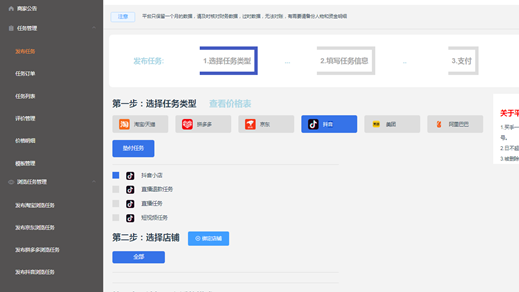 优质平台,补单功能齐全,各种任务模式,一拖五多链接、手机淘宝任务、淘宝预售任务、抖音进店任务、淘宝直播任务、京东拼多多任务,平台全部支持